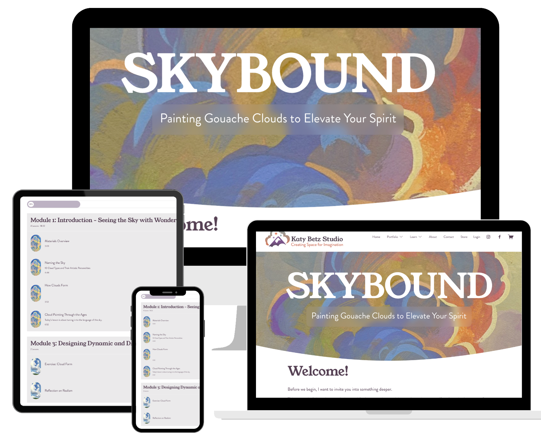 Skybound is thoughtfully designed to welcome beginners while still inspiring more experienced artists. If you have some art background and are new to painting, you’ll be able to confidently follow each lesson and create beautiful skies along the way.